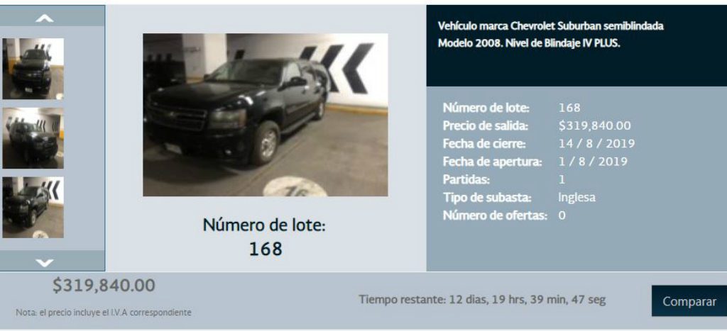 Este jueves arrancó, vía electrónica, la primera subasta de 76 vehículos propiedad del Senado de la República, a cargo del Servicio de Administración y Enajenación de Bienes (SAE).