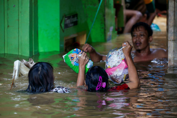 Las lluvias torrenciales y crecidas de ríos han golpeado con fuerza la región de Yakarta, con miles de hogares inundados, deslizamientos de tierra que obligaron a miles de personas a huir de sus hogares.