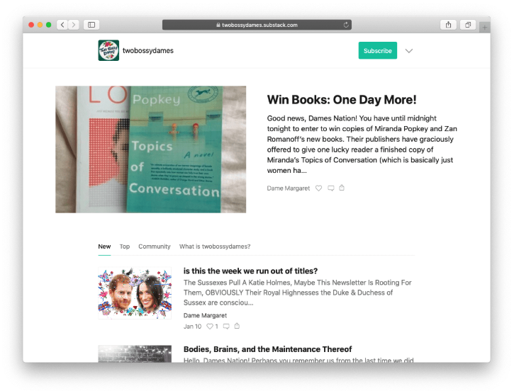 Parte del éxito inicial de Substack provino de su combinación inteligente de blogs y boletines. Cualquiera que quisiera construir uno u otro obtuvo ambos, en un formato que funcionó para cada uno; los bloggers podían enviar correos electrónicos, y los centrados en el correo electrónico también tenían un hogar en internet. El hecho de que el producto llegara a las herramientas de monetización lo hizo aún más atractivo.