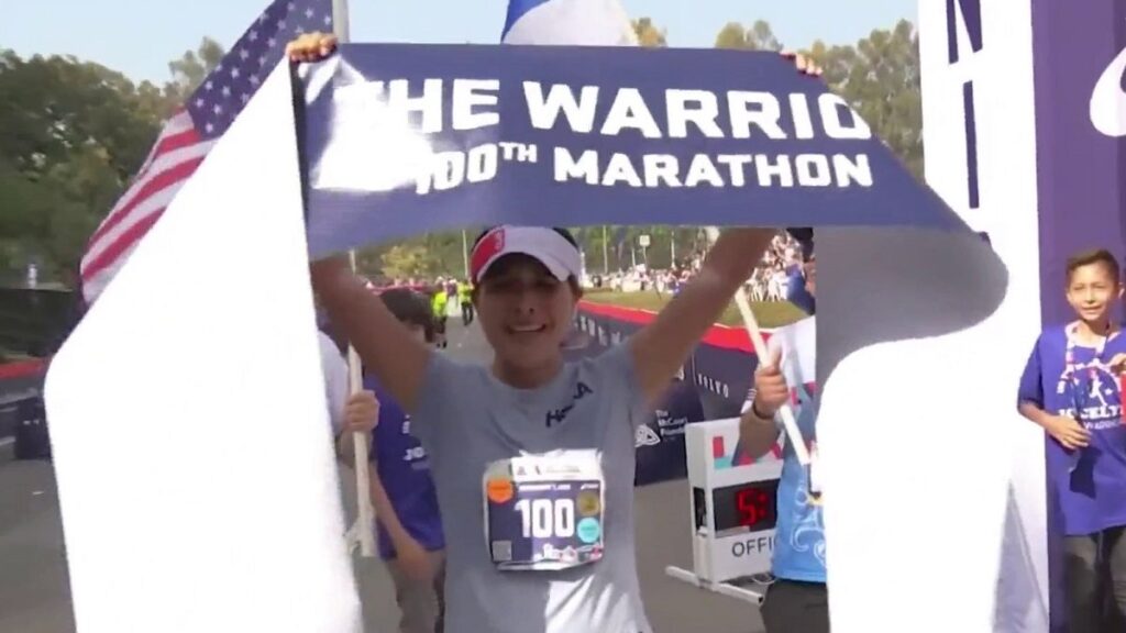 La joven, con un suspiro y una sonrisa, agradeció a Dios por permitirle cruzar la meta por centésima vez, en el Maratón de Los Ángeles celebrado el domingo 7 de noviembre de 2021.