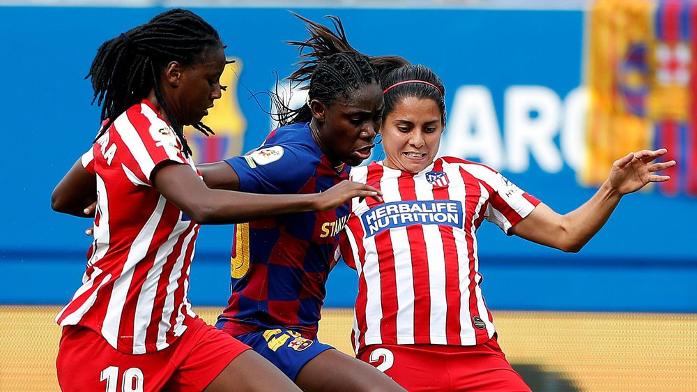 Oshoala intenta marcharse de la presión de Tounkara y Robles, durante el partido de la Liga Iberdrola.Alberto Estévez / EL PAÍSA la espera de ver en qué se convierte el nuevo Real Madrid, el Barcelona y el Atlético han construido una rivalidad a fuerza de partidos duros, algunos divertidos, otros descafeinados, siempre con sabor a clásico. El cuadro de Madrid desquiciaba al Barça en la Liga, que veía como las rojiblancas alzaban el título una y otra vez, mientras desde la secretaria técnica azulgrana aumentaban la inversión año tras año. Pero el director deportivo del Barcelona, Markel Zubizarreta (hijo de Andoni, portero del Dream Team), dio con la tecla. Apostó por Lluís Cortès en el banquillo y por un trío de ataque tan explosivo como potente, con las extranjeras Martens (Holanda), Oshoala (Nigeria) y Graham (Noruega), a las que se suma la elegante Jenni Hermoso, a veces como delantera, otras como volante. Y el Barça volvió a reinar en la Liga Iberdrola, aunque no lo gozó (la Federación le otorgó el título con el torneo sin finalizar) y este viernes tampoco parece que vaya a disfrutar de su primer clásico en Europa ante el Atlético en los cuartos de final de la Champions (18.00 horas, Gol TV).Aunque sin el ritmo que deseara, el Barça llega animado a Bilbao. Le desconcierta, en cualquier caso, el Atlético. Ignoran cómo puede afectar al conjunto rojiblanco las bajas (entre sancionadas, lesionadas y afectadas por la covid-19, presentan una convocatoria con 17 jugadoras, con tres del filial) y anhelan un partido competitivo para tomar forma. “Siempre luchan e históricamente son partidos muy igualados. Lo espero en la misma línea”, aseguró Cortès. Es la primera vez en su historia que el Atlético se cuela entre los ocho mejores de Europa. El Barcelona, en cambio, ya suma experiencia en Champions: la disputó por primera vez en la campaña 2012-2013, perdió cuatro veces en los cuartos, una vez en la semifinal y la temporada pasada logró una gesta inédita para el fútbol femenino: la final.No pudo decir ni pío el Barcelona en la final ante el poderoso Olympique Lyon. El cuadro francés, seis veces campeón, el equipo que más partidos ha disputado en la competición (100), se presenta en el País Vasco otra vez como el gran favorito al título. No saben, eso sí, si podrán contar con su jugadora franquicia, la noruega Ada Hegerberg, máxima goleadora del torneo (53), que se recupera de una rotura del ligamento de la rodilla derecha.Como la Champions masculina se instaló en Lisboa, la femenina se reparte entre Bilbao y San Sebastián. El ganador del duelo entre el Atlético y el Barcelona se enfrentará con el vencedor partido entre el Glasgow City y el Wolfsburgo, que se juega en Anoeta. El cuadro alemán es el aspirante para romper la hegemonía del Lyon. La noruega Pernille Harder y la polaca Ewa Pajor son las cartas de Wolfsburgo, campeón de la Champions en 2013 y 2014. No lo tendrá fácil el Barça, mucho menos el Atlético, para colarse en la final, que se jugará el domingo 30 en el estadio de la Real Sociedad.