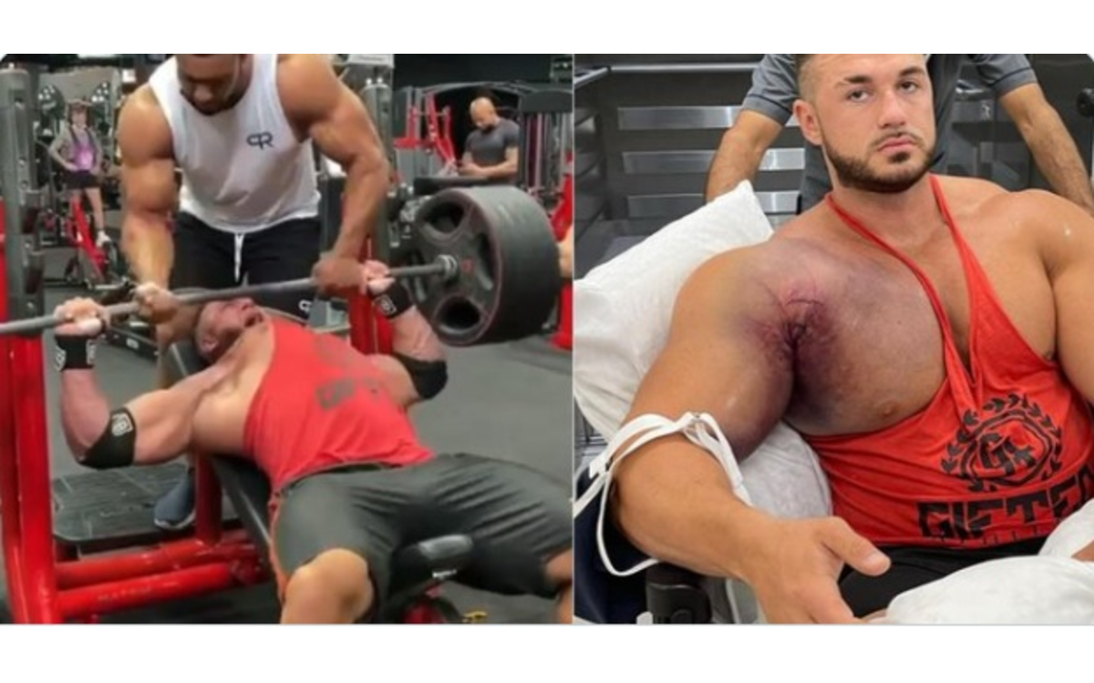 El fisicocontructivista Ryan Crowley, de 23 años, sufrió una escalofriante lesión en el pecho al intentar cargar más peso del que podía soportar; fue operado de emergencia y se recupera satisfactoriamente.