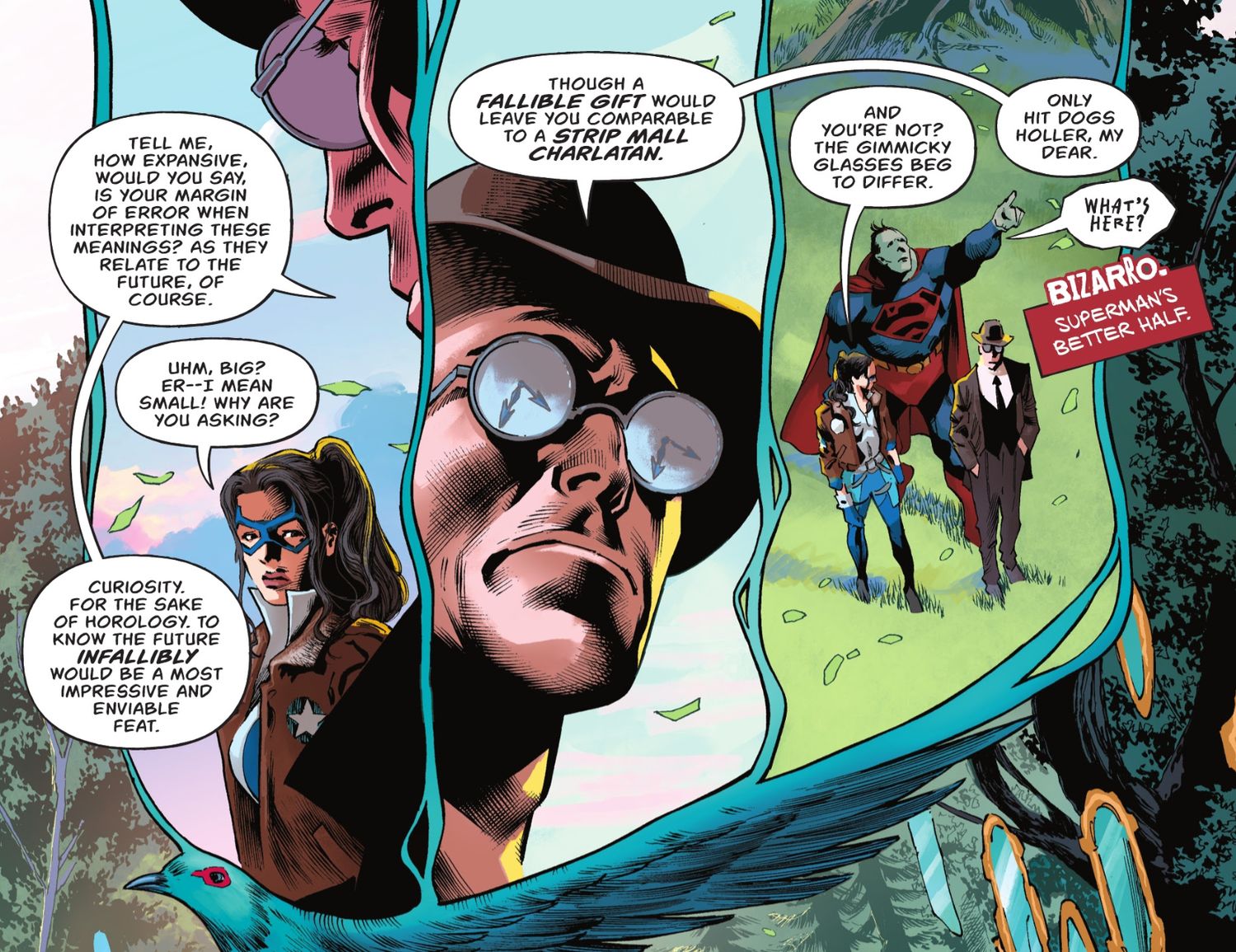 “Conocer el futuro de manera infalible sería una hazaña de lo más impresionante y envidiable.“, comenta Clock King; más tarde, Dreamer admite que “los sueños nunca fallan [to accurately predict the future]…sólo nuestra interpretación lo hace.” Estos dos personajes de DC tienen poderes aparentemente perfectamente compatibles – y ahora están trabajando en el mismo equipo peligroso.