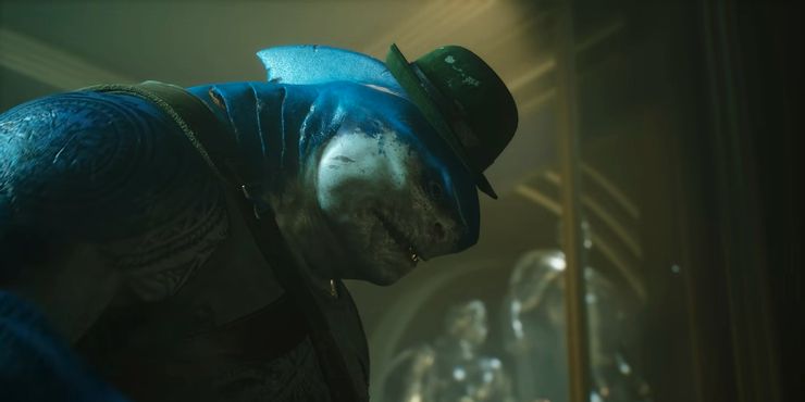 Durante el análisis de Gizmo de los miembros del Escuadrón Suicida, se reproduce una escena en la que King Shark toma un bombín verde y se lo coloca en la cabeza. Este sombrero se ve exactamente como el que usa Edward Nigma, o el Acertijo, en el Batman: Arkham juegos, donde le causó muchos dolores de cabeza al héroe con sus desafíos y trofeos de Riddler.