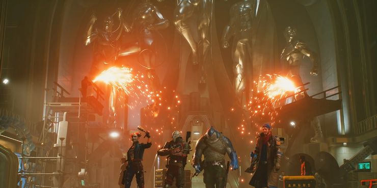 El Escuadrón Suicida parece visitar el Salón de la Justicia durante el tráiler de FanDome 2021, y una gran cantidad de estatuas en el fondo representan a los miembros heroicos de la Liga. En medio de Superman, Wonder Woman, Flash y Green Lantern se encuentra una estatua de Batman, lo que indica que pudo encontrar tiempo entre los eventos del Arkham juegos para trabajar junto a ellos en un escenario digno de conmemorar.