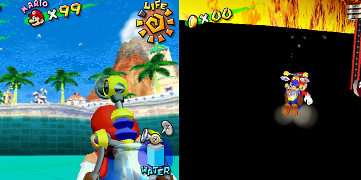 Por lo general, esta falla solo se realiza en Delfino Plaza, pero se pueden realizar variaciones en Sirena Beach y Noki Bay. Si Mario intenta subirse a algo o sujeta un barril de una manera específica cuando sube el agua, podrá correr bajo el agua. Esto es divertido para explorar la isla. ¡También hay una falla similar que le permite nadar en lava!