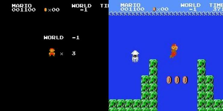 Minus World es uno de los fallos más famosos de todos los tiempos. Por una buena razón: este es un nivel adicional completo creado por peculiaridades del código del juego. El juego no accede a niveles no utilizados, sino que saca una versión alterada del Mundo 7-2 de la nada. Este nivel es imbatible, pero a través de la piratería, los jugadores han encontrado varios otros mundos negativos.