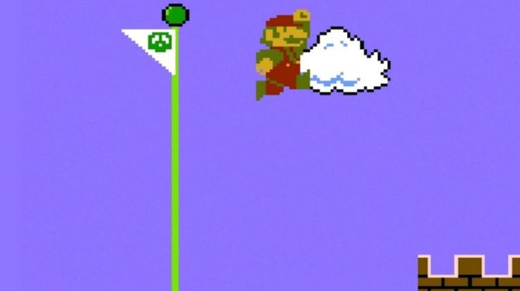 el fin de Super Mario Bros. los niveles son icónicos. El jugador salta y tira hacia abajo la bandera de Koopa en el castillo enemigo y la reemplaza. Es un remanente de una vieja historia del manual de instrucciones, pero se ha vuelto famoso entre los jugadores, por lo que se ha recuperado a pesar de que es una especie de Super Mario cliché. Desde 1985, todos los jugadores que alguna vez vieron el asta de la bandera han querido saltar sobre él.