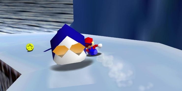 The Big Penguin Race es extremadamente memorable, ya que te enfrentas a, bueno, un pingüino gigante. Afortunadamente, el pingüino no ataca a Mario, sino que lo desafía a una carrera. Puede ser bastante difícil, ya que hay algunos giros que requieren algunas maniobras experimentadas.