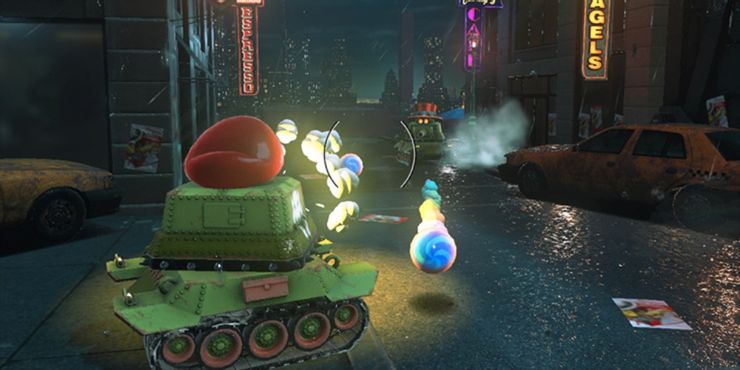 Los Sherms con forma de tanque tienen la habilidad única de atacar a los enemigos desde la distancia. Estos proyectiles pueden destruir obstáculos y oponentes por igual, incluso bloqueando los ataques a distancia entrantes. También son necesarios para la pelea de Mecha Wiggler, una batalla de jefes en Metro Kingdom.