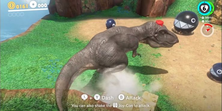 En Cascade Kingdom, el T-Rex puede saltar en un trampolín, y si Mario sale de la captura en el punto más alto y se lanza hacia adelante, puede entrar en la pelea con Madame Broode. Esto le permite sobrepasar un área larga que normalmente tendría que atravesar. Si los jugadores buscan completar esta sección rápidamente, es imprescindible utilizar el T-Rex en todo su potencial.