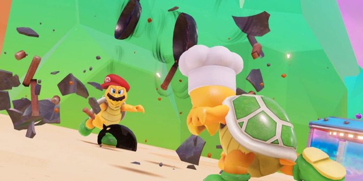 Los Pokios también son una parte importante de la batalla de RoboBrood al final del reino. Derrotar a este enemigo solo con Mario es extremadamente difícil, pero con la ayuda de un Pokio, es mucho más manejable. Solo puede escalar ciertos muros, pero estos están presentes en todo el Reino de Bowser y son útiles en una gran parte del mismo.