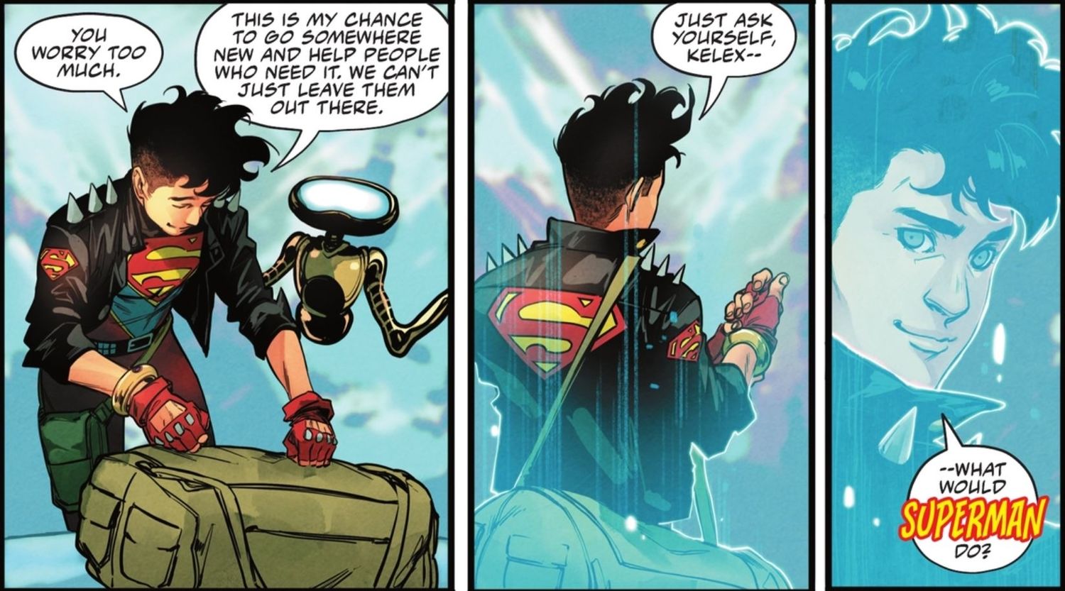 Superboy: El hombre del mañana #1 de Kenny Porter y Jahnoy Lindsay comienza como era de esperar, con Conner Kent listo para salvar el día del Doctor Polaris. Sin embargo, el resto de la Familia Superman se encarga de ello, dejando a Superboy sin nada que hacer. Conner decide recibir algunos consejos de Ma y Pa Kent sobre cómo puede encontrar su lugar en una post-Punto de inflamabilidad mundo y se le ocurre la idea de viajar al espacio para buscar formas de ayudar. Superboy viaja a un mundo distante donde un Dominator está atacando un planeta con un ejército de clones mejorados genéticamente. A pesar de las abrumadoras fuerzas de los villanos, Conner desata todo el poder que tiene contra Dominator y su ejército de soldados modificados.