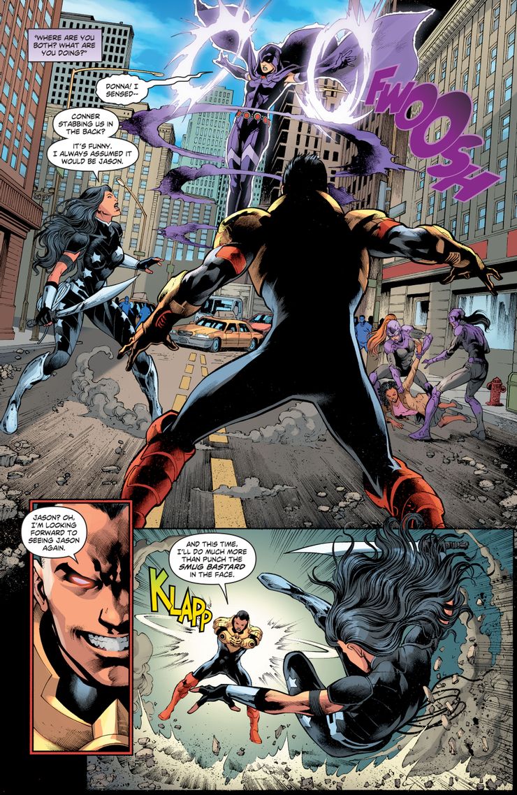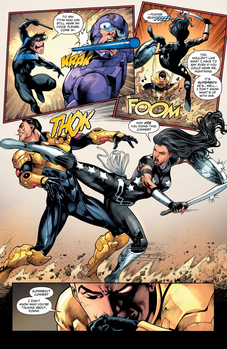 En números anteriores de titanes unidos, los poderes de Superboy le han estado fallando, lo que ha provocado que en gran medida quede marginado. Mientras tanto, el resto de los Titanes han estado descubriendo un complot secreto y una conspiración masiva que involucra a metahumanos durmientes que podrían activarse en cualquier momento. Además, la hermana más oscura de Starfire, Blackfire, ha dado a conocer su participación, secuestrando a Conner, quien no pudo resistirse, ya que ya no tiene la fuerza que suele tener como un clon de Superman.