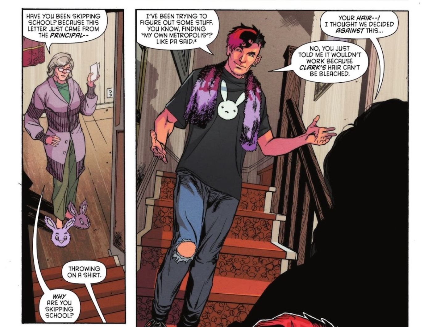 “/> Cuando Ma Kent le recuerda que decidieron no realizar un cambio tan drástico, Conner responde: “No, acabas de decirme que no funcionaría porque el cabello de Clark no se puede decolorar.Y si bien esto puede parecer una decisión simplista y espontánea para el Chico de Acero, este simple ejemplo de rebelión de un súper adolescente está teniendo exactamente el efecto que Superboy pretendía.