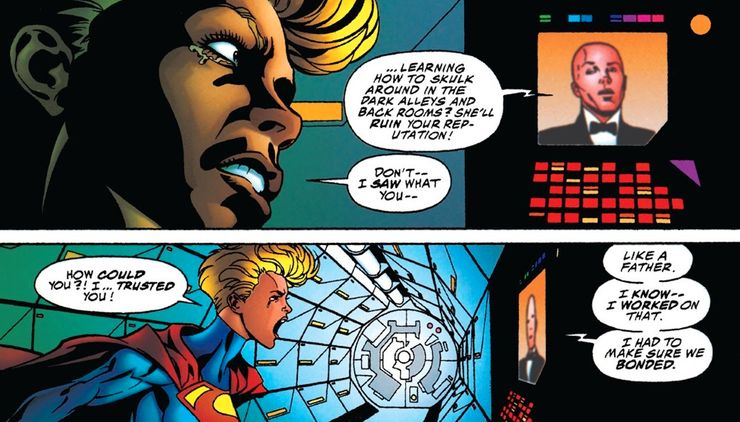 Mientras se une a Batgirl para “salvar” a Luthor del Joker, Supergirl descubre su secreto: había estado usando a un bebé fallecido, Kal-El, para hacer una batería solar con él. Esto aturde a Kara, obligándola a darse cuenta de que este gran hombre en su vida que ella ha visto como un ejemplo de progreso y buena voluntad no es solo un fraude, sino una persona que la ha estado usando y manipulando. La crianza de Clark Kent y Kara por parte de padres humanos es una parte importante del desarrollo de su humanidad y amor por ella. Alimenta su visión del mundo y su deseo de proteger a sus habitantes. Tener padres humanos efectivamente los humaniza. Con una madre sobrehumana como la Mujer Maravilla y las mentiras de Lex Luthor, Kara no tendría una experiencia a largo plazo con mentiras y traiciones. Después de todo, Diana es la Diosa de la Verdad y no tendría motivos para mentirle a su hija o ser algo menos que aparentemente perfecta.