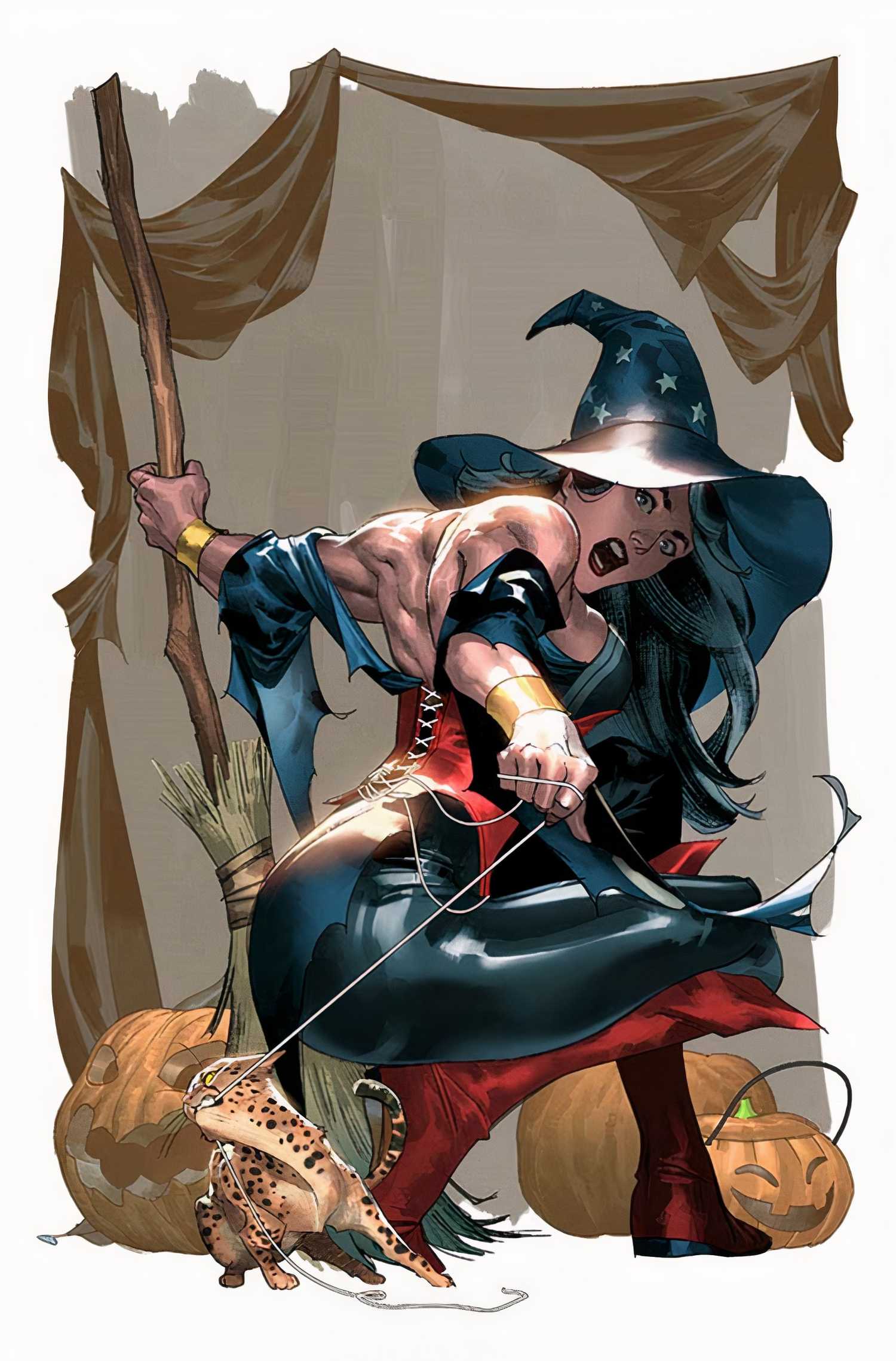Aquí, Putri fotos Diana con atuendo de bruja clásica, completa con una escoba y un sombrero de bruja. Sin embargo, la mejor parte de este diseño es que todavía se adapta de manera única a Wonder Woman, con el sombrero puntiagudo con el diseño exclusivo de Diana Star-Spangled. Además, Cheetah se imagina como un gato pequeñouna forma inteligente de rendir homenaje a los clásicos tropos de brujas.