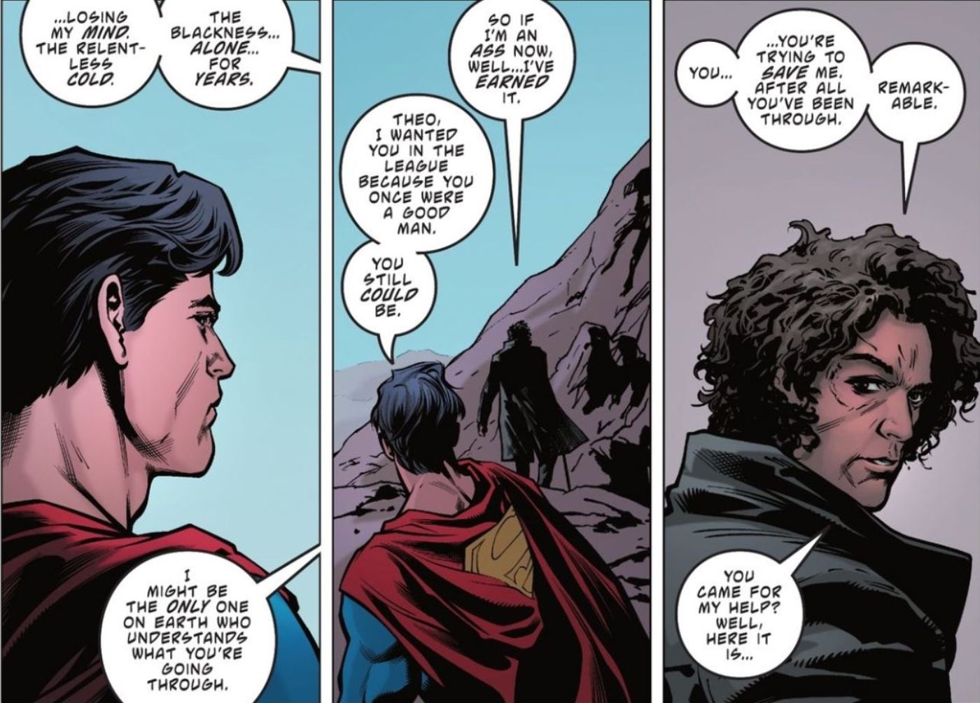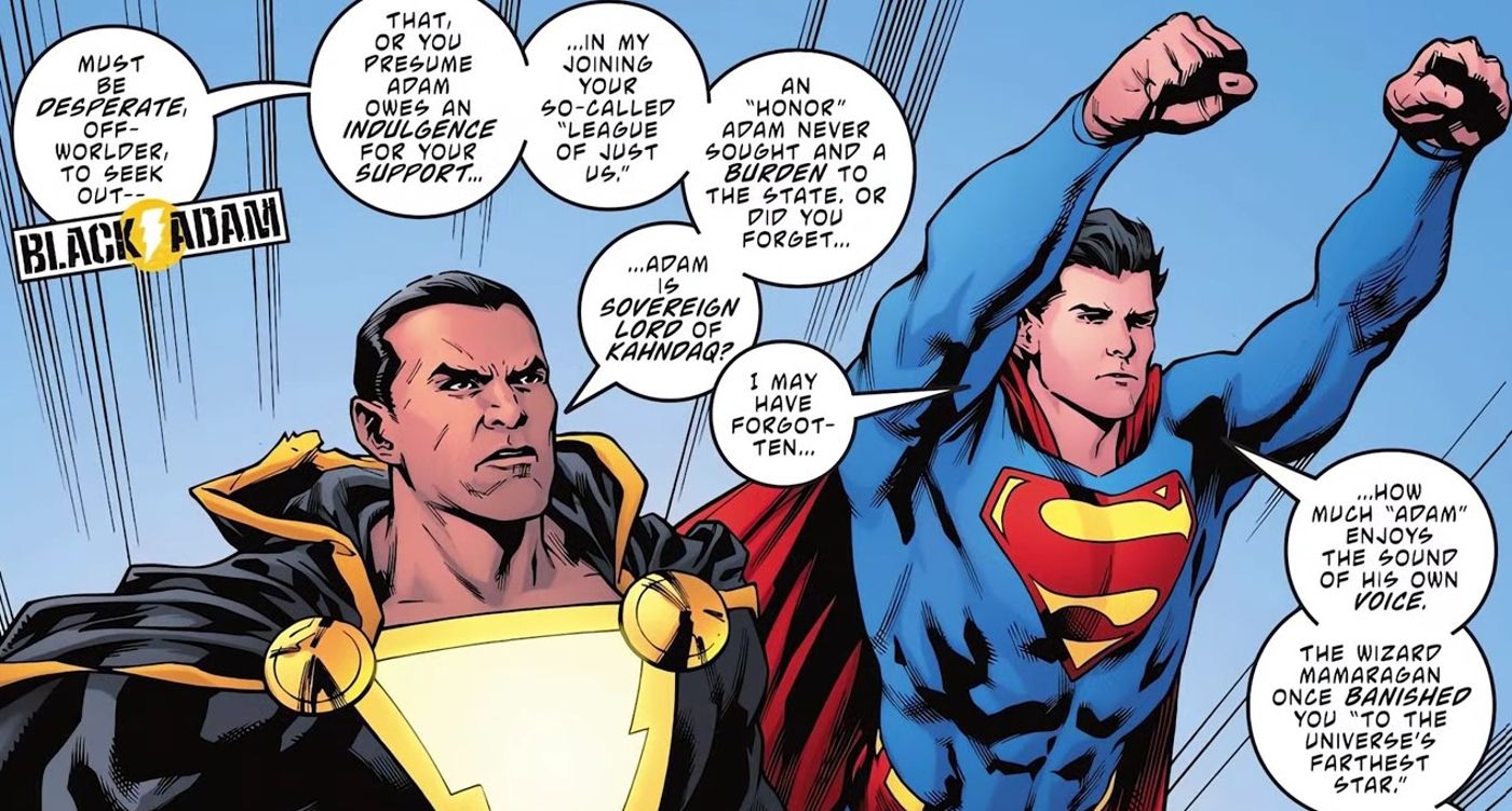 “/> Desafortunadamente, Black Adam no tiene una respuesta para Superman. Pero cuando se marcha, Superman le dice al lado humano de Black Adam, Theo, que Clark apoyó que Adam se uniera a la Liga de la Justicia porque Superman creía que el antihéroe era bueno y todavía tiene el potencial de ser. Incluso Black Adam se sorprende de que Superman todavía esté tratando de redimirlo.