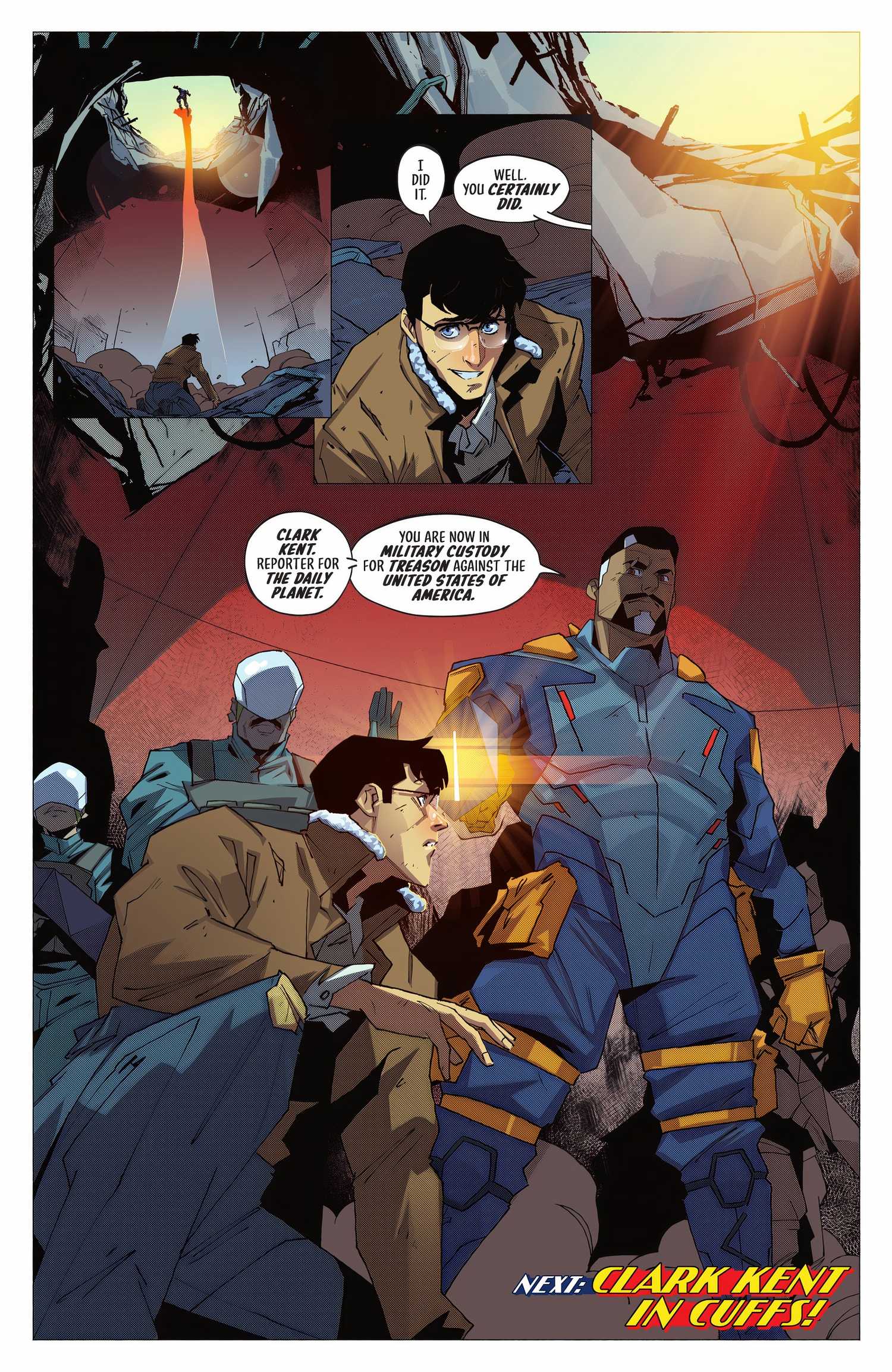 Deathstroke, Bloodsport y Amazo se pelean y Superman interrumpe mientras está en su papel de Clark, sabiendo que está poniendo en riesgo su vida privada. Clark convence a Amazo de no ser el arma que el gobierno quiere que sea. Amazo se va, pero antes de que Clark pueda descansar, Bloodsport arresta a Superman y lo acusa de traición.