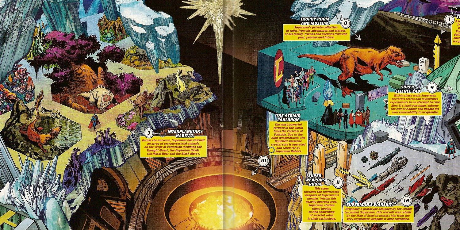 Como se desprende de su nombre, la Fortaleza de la Soledad le permite a Superman pasar algún tiempo a solas. Pero eso no significa que sea sólo una sala helada sin nada dentro. En la misma línea que la Baticueva de Batman, la Fortaleza de Superman contiene muchos trofeos y recuerdos de sus aventuras pasadas junto con artefactos kryptonianos que lo conectan con su herencia alienígena. Superman también utiliza la tecnología avanzada dentro de la Fortaleza para estudiar y realizar investigaciones. La afinidad de Gunn por el lado extraño y divertido de los cómics de la Edad de Plata y el Bronce podría implicar que la Fortaleza también puede albergar artefactos notables como la Ciudad Botella de Kandor y zoológicos alienígenas.