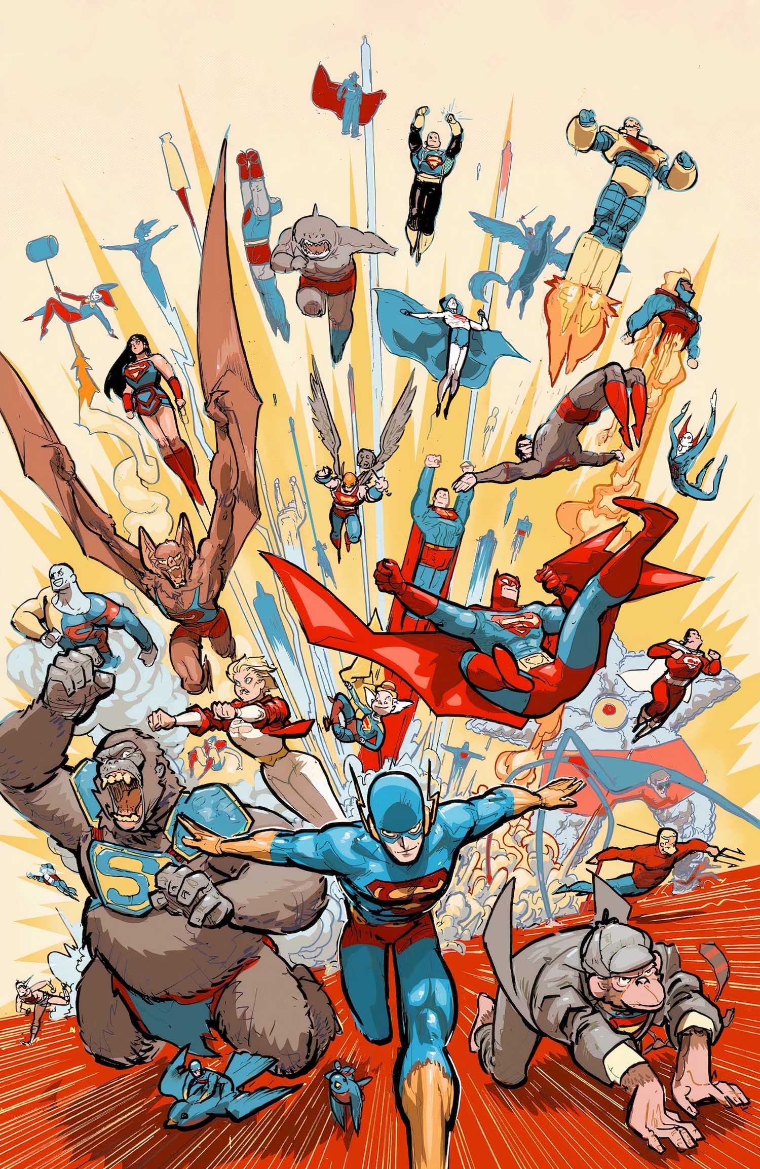Ningún héroe aprovecha esta serie más que The Flash, que aparece prominentemente en las portadas de Justice League Unlimited #7, Superman #26y, por supuesto, El flash #21. Wally obtiene tres trajes de Superman salvajemente diferentes, pero Flash los retira todos en esta serie creativa de variantes.