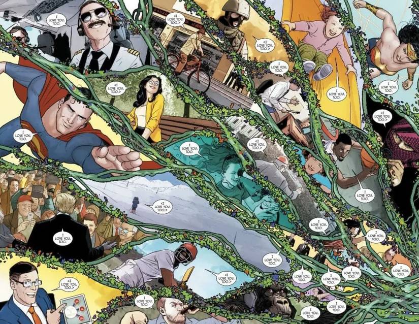 El ejemplo más reciente de Poison Ivy enfrentando a Superman y ganando tiene lugar en Tom King’s Ordenanza #42 (2018), que era parte de su “Todo el mundo ama a la hiedra” arco de la historia. En esta historia, la sirena de la ciudad de Gotham infecta la Tierra a escala global con control mental basado en esporas. Ivy toma el control de cada hombre, mujer y niño en el planeta, incluido Superman, con dos de las únicas excepciones que son Batman y Catwoman.