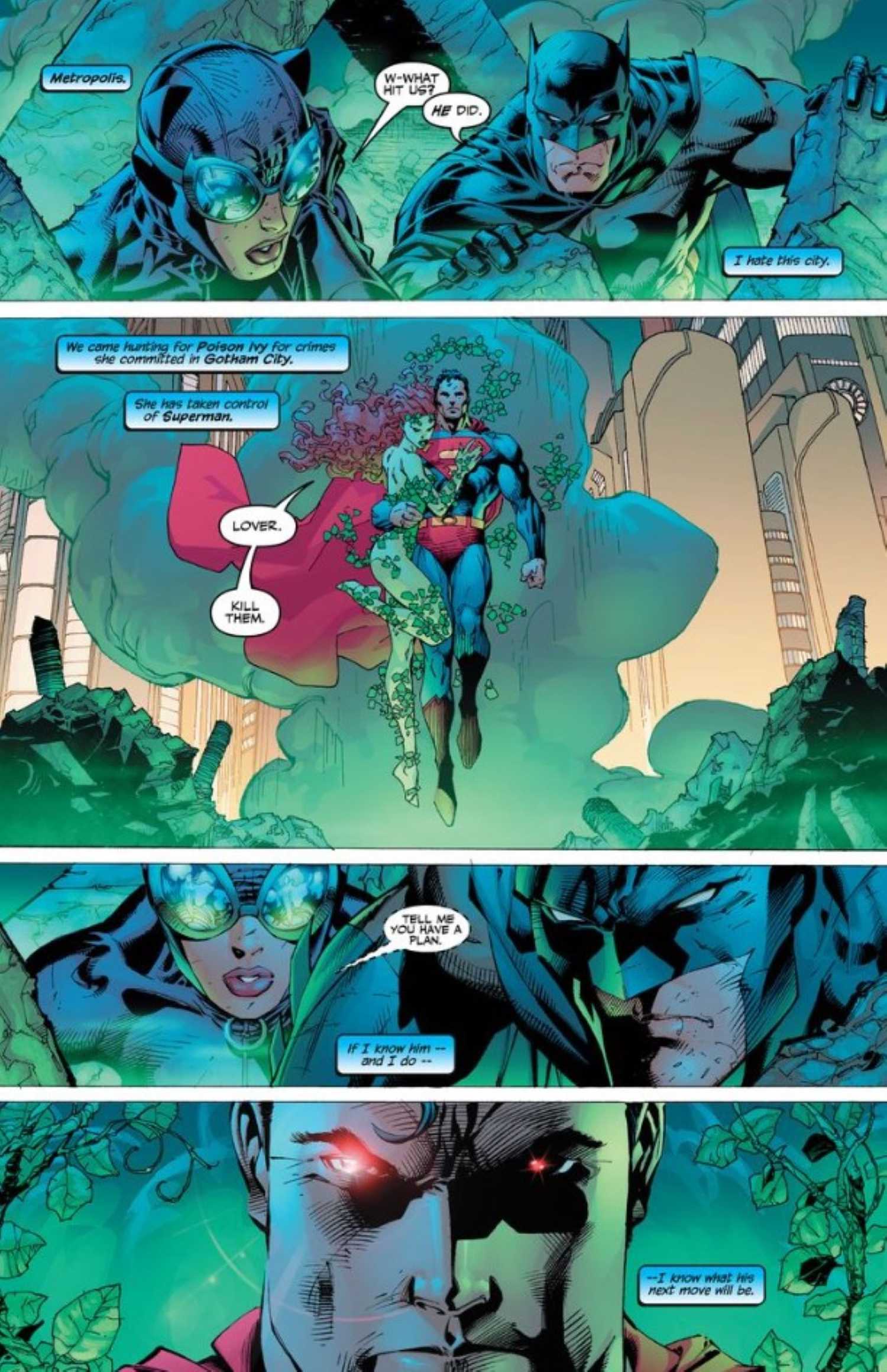 Después de que Batman y Catwoman descubrieron que Ivy usó sus feromonas que controlan la mente en Selina y está conectada al plan de Hush, rastrean la sirena de la ciudad de Gotham a Metropolis. Allí, encuentran que Superman ha caído bajo el control de Ivy después Ella usa lápiz labial infundido con kriptonita para debilitarlo para que sus feromonas que controlen la mente puedan infectarlo. Ella entonces Ordena al hombre de acero para matar a Batman.