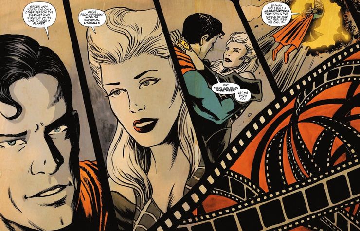 Lois Lane suele ser vista como una reportera experta con olfato para exponer delitos y muchos problemas. Ella se mete en problemas, pero en realidad no los crea. Spider Lady, por otro lado, tiene algo de historia con los elementos criminales, aunque en gran parte como un encubrimiento. Al confesar sus sentimientos por ella, Superman señala lo único que a Lois generalmente le falta, lo que hace que los antecedentes de Spider Lady sean irrelevantes: ella conoce la pérdida. Superman perdió su planeta de nacimiento y, aunque esta versión de Lois todavía tiene la Tierra, perdió el Daily Planet. Un ataque muchos años antes de esta historia provocó la destrucción de la sede del periódico y se presume que Lois está muerta. Fue entonces cuando nació su nueva personalidad. Ella ha permanecido escondida, construyendo un imperio criminal secreto, aunque fácilmente ayuda a Batman y Superman con sus heroicos esfuerzos demostrando que ella realmente no es mala. El Mundo del Mañana de Superman ya tiene su propia Lois Lane, pero esto no le importa al Hombre de Acero. Sabe lo que quiere, alguien que pueda comprenderlo a un nivel más profundo.