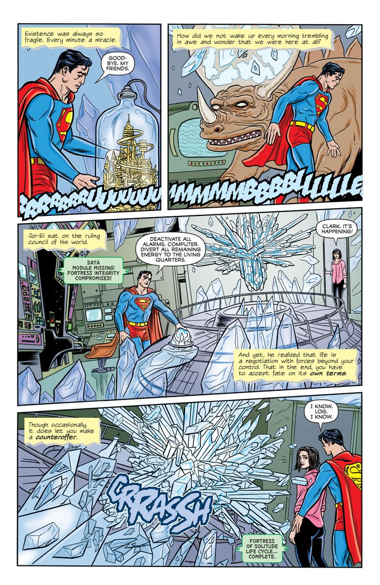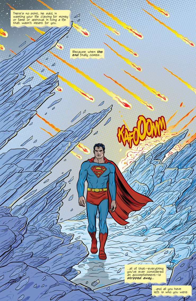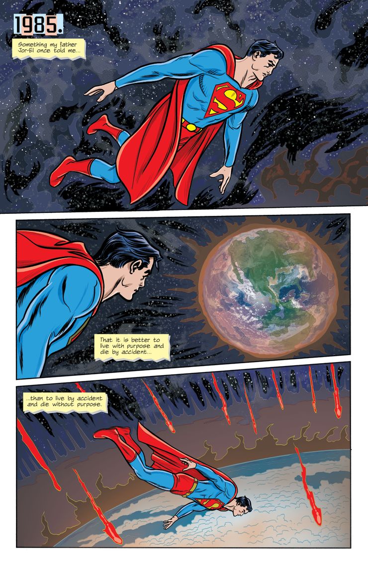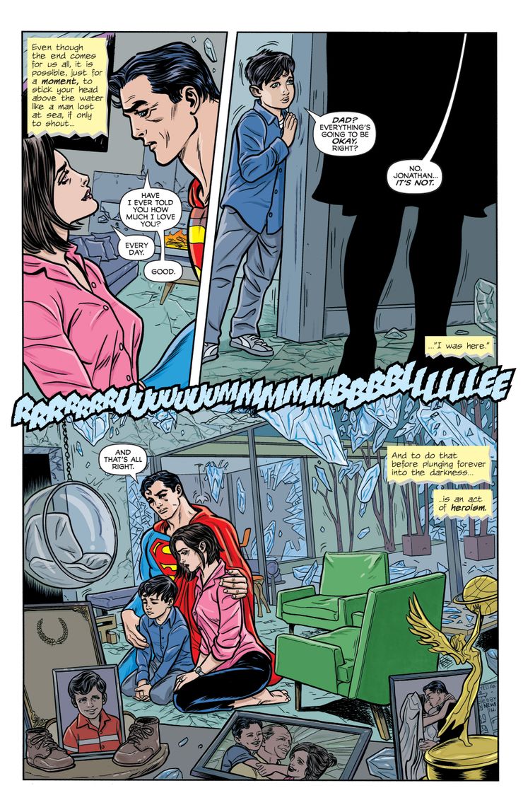 Es cierto que este es un comienzo oscuro para un cómic de Superman. Durante casi la totalidad de su historia, Superman ha sido un símbolo de esperanza y, en general, ha sido retratado como el tipo que lucha hasta el final. Pero este es un Clark Kent que se ha resignado a su destino y aparentemente no le queda más esperanza que dar. Sin duda, no es un error que un momento tan severo elija comunicar cuán desesperada es la situación al invertir los comienzos optimistas de Superman.