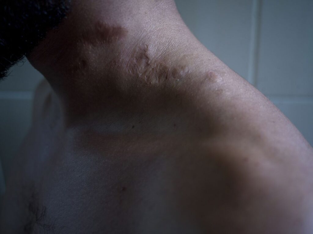 Brillantes cacahuetes y verdes guisantes relucen sobre el arroz que Muhammad, de 24 años, ha cocinado. “Lo hace bien” confirman sus dos compañeros de piso. Viven en el barrio de Patisia, una zona más alejada del centro de Atenas, pero más económica lo que les permite un piso más cómodo; en algunos conviven hasta una decena de personas en habitaciones compartidas. Los tres son de Siria, un país asolado por el conflicto desde 2011 y donde operan diversas facciones de Estado Islámico. “Siendo menor ya estuve en la cárcel”, cuenta el joven, que trabaja de mecánico y es el único con empleo de los supervivientes de tortura entrevistados. “En mi país, te acusan de terrorismo y te tratan como si fueses Osama Bin Laden”, continúa. Con precisión detalla cómo, en sucesivas detenciones, le humedecían el cuello, la espalda o el torso y le introducían agujas metálicas en su piel, conectadas a unas baterías y que suministraban descargas eléctricas. Un reguero de puntos salpica la piel de su espalda y de su pecho. “No tenía ninguna razón para quedarme en mi país”. En septiembre de 2018, con el verano a punto de despedirse, Muhammad salió de Damasco.