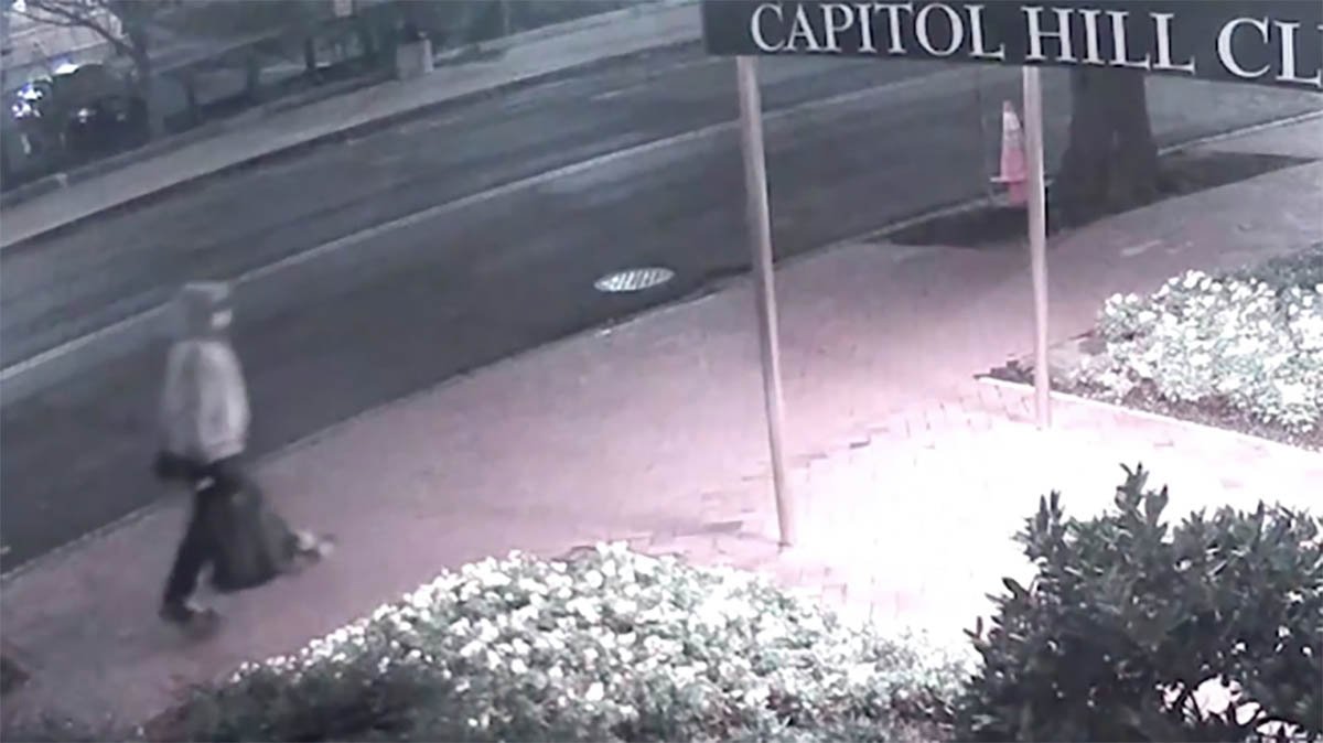 El nuevo video divulgado muestra al sospechoso caminando por una acera en el vecindario de Capitol Hill, a pocas calles del Capitolio. En una de las escenas se para y pone su bolso en el suelo antes de empezar a caminar otra vez. Otras lo muestran caminando por un callejón y sentado en el banco de un parque.