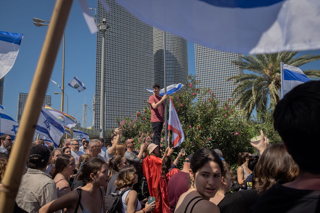 Las multitudes en todo el país crecieron durante el día, incluso alrededor de la estación Hashalom de Tel Aviv, un centro de las protestas.