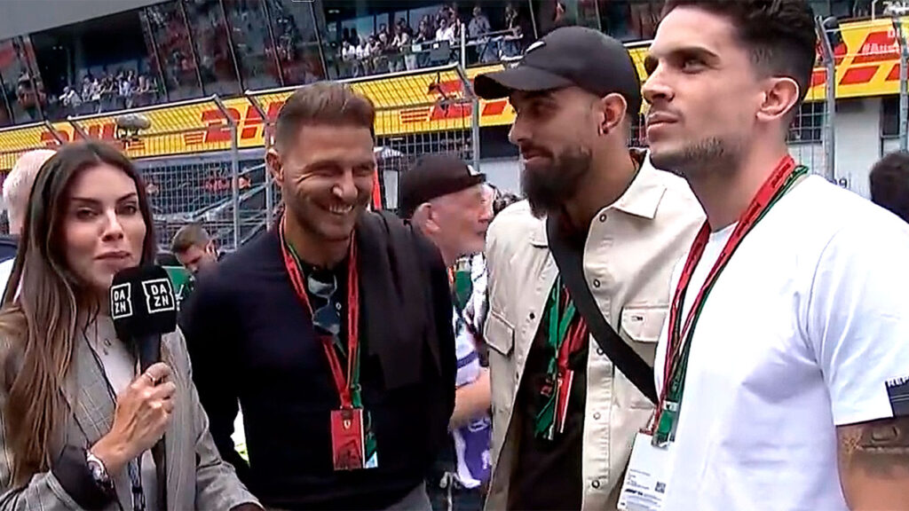 Joaquín Sánchez es pura espontaneidad y este fin de semana lo ha vuelto a demostrar. El futbolista ha acudido al Gran Premio de Austria de Fórmula 1 junto a sus compañeros Marc Bartra y Borja Iglesias, dejando un momento que se ha convertido en viral. El trío de deportistas ha sido entrevistado desde el paddock por los micrófonos de DAZN. Todo normal hasta conocer que la reportera era Melissa Jiménez, exmujer y madre de los tres hijos de Bartra.