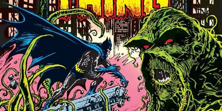 El problema es a la vez triunfalmente divertido y autoindulgente, lo que permite que Swamp Thing, por una vez, se suelte y demuestre el alcance total y ridículo de sus poderes (en un momento se encarnó en una secuoya de varios cientos de pies de altura). monstruo y amenazando con erradicar instantáneamente a toda la población de Gotham manipulando las bacterias florales en el tracto digestivo humano).