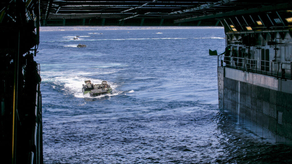 Los marines usan los vehículos para transportar tropas y su equipo desde los barcos de la Armada hasta tierra. Los vehículos se apodan “amtracs” por el nombre original de “tractor anfibio”.