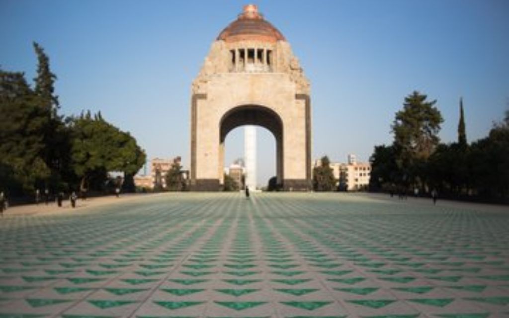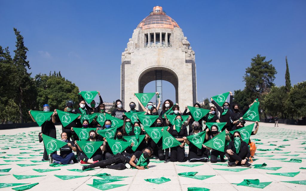 Colectivos feministas tapizaron con pañuelos verdes la explanada del Monumento a la Revolución, en la Ciudad de México, en exigencia de la legalización del aborto en el país.