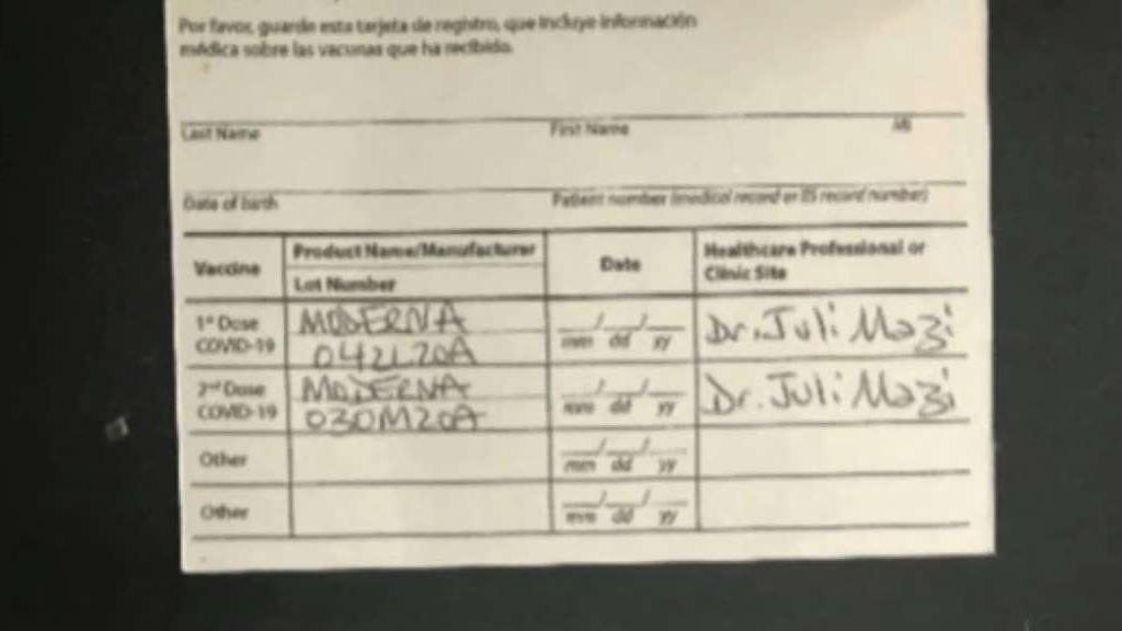 Los documentos judiciales alegan que vendió tarjetas de vacunación falsas a clientes que parecían demostrar que habían recibido vacunas Moderna. En algunos casos, los documentos muestran que la propia Mazi llenó las tarjetas, escribió su propio nombre y supuestos “números de lote” de Moderna para una vacuna que de hecho no había administrado. Para otros clientes, proporcionó tarjetas de registro de vacunación CDC COVID-19 en blanco y le dijo a cada cliente que escribiera que había administrado una vacuna Moderna con un número de lote específico.