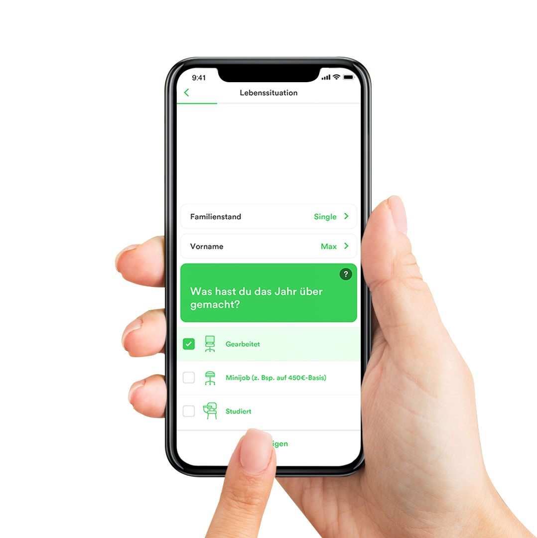La aplicación le hace preguntas simples para maximizar sus reembolsos de impuestos. Cuando empiece a responder preguntas, Taxfix selecciona las siguientes preguntas relevantes y oculta las preguntas que no se aplican a su situación actual. Taxfix acepta fotos de su recibo de sueldo para que no tenga que presentar formularios. Luego envía su presentación a la oficina de impuestos.