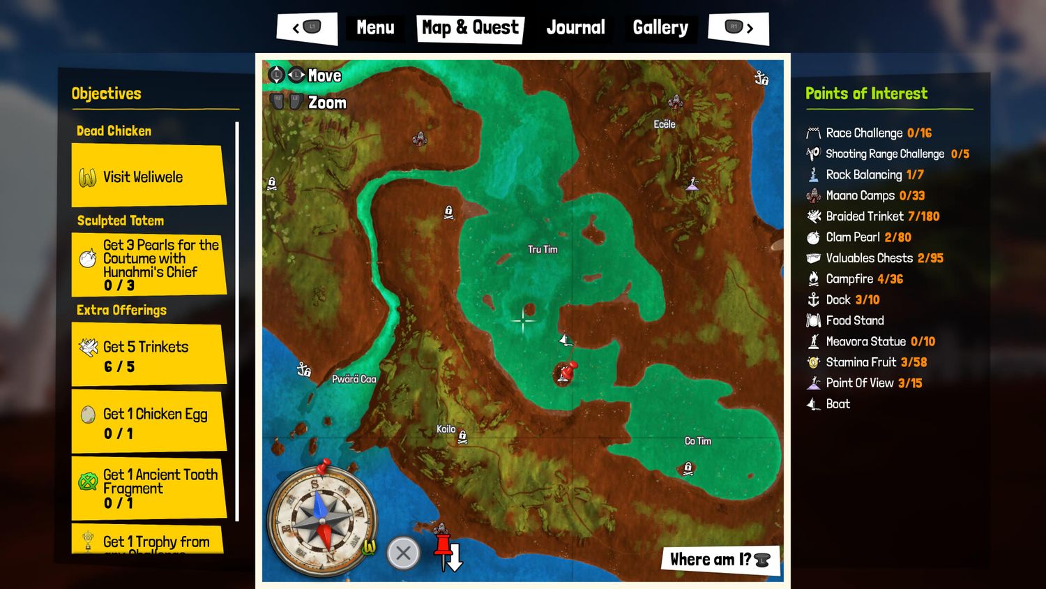 Esta estatua se encuentra en una pequeña isla en el lago Tru Tim. Los jugadores pueden caminar hasta él por tierra o navegar a través del lago usando el bote de Tchia. Sin embargo, navegar en el lago es difícil ya que hay muchos árboles muertos que pueden ser difíciles de navegar.