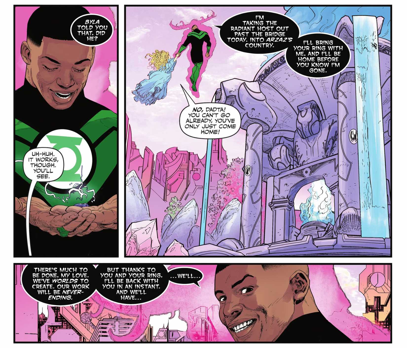 John aún no está vencido, ya que su mente sigue siendo suya y Byla está tratando de romper el control que Olgrun tiene actualmente sobre Green Lantern. El cuerpo de John puede estar corrompido por la luz de Olgrun, pero Lantern estuvo a punto de ser convertido por Radiant Dead y logró superarlo. Por muy mal que se vean las cosas ahora, John tiene los niveles más altos de fuerza de voluntad de cualquier Green Lantern vivo. Si puede profundizar y aprovechar su inmensa fuerza de voluntad, Linterna Verde puede deshacer esta transformación de pesadilla antes de que sea demasiado tarde..
