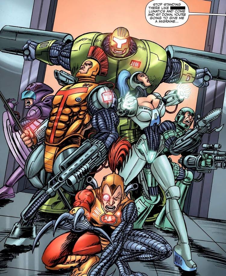 Puede que sea un pequeño momento, pero honestamente creo que la sugerencia de Mallory de la ‘Unidad X’ está llena de significado. En primer lugar, parece ser una oportunidad para los ‘X-TREME 90’s, cuando los superhéroes valientes y musculosos dominaban la industria. Títulos como Fuerza X, Desovar, Vigilancia de tormentas y Justicia extrema Ponga un gran énfasis en los héroes machistas que empuñan espadas mortales y armas de fuego gigantescas. Mientras los chicos Siempre fue provocativo y a veces pueril, también es increíblemente desdeñoso con esta era de los cómics de superhéroes, parodiándola directamente en el equipo cyborg armado Paralytic. No parece exagerado decir eso. Carnicero desaprobando “Unidad X” lo muestra rechazando el género de superhéroes en su forma más autoindulgente..