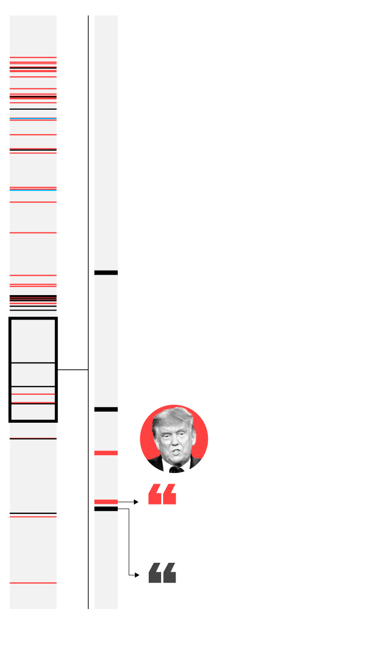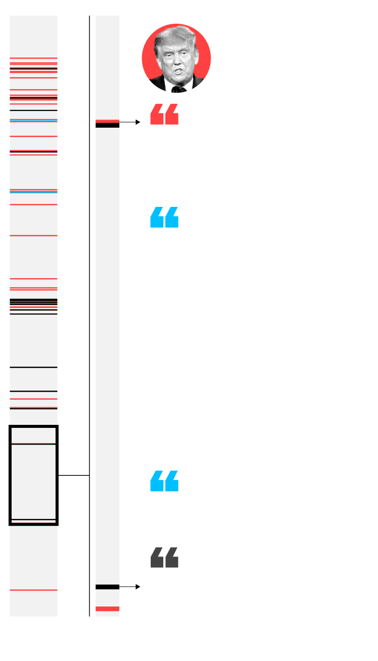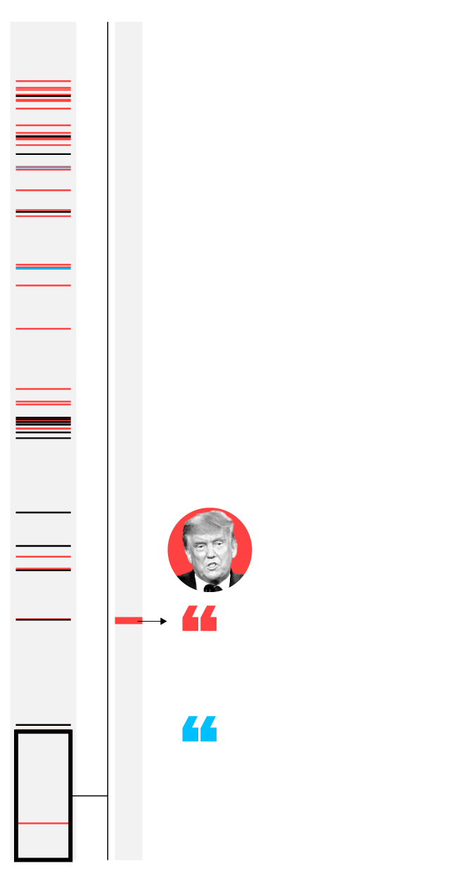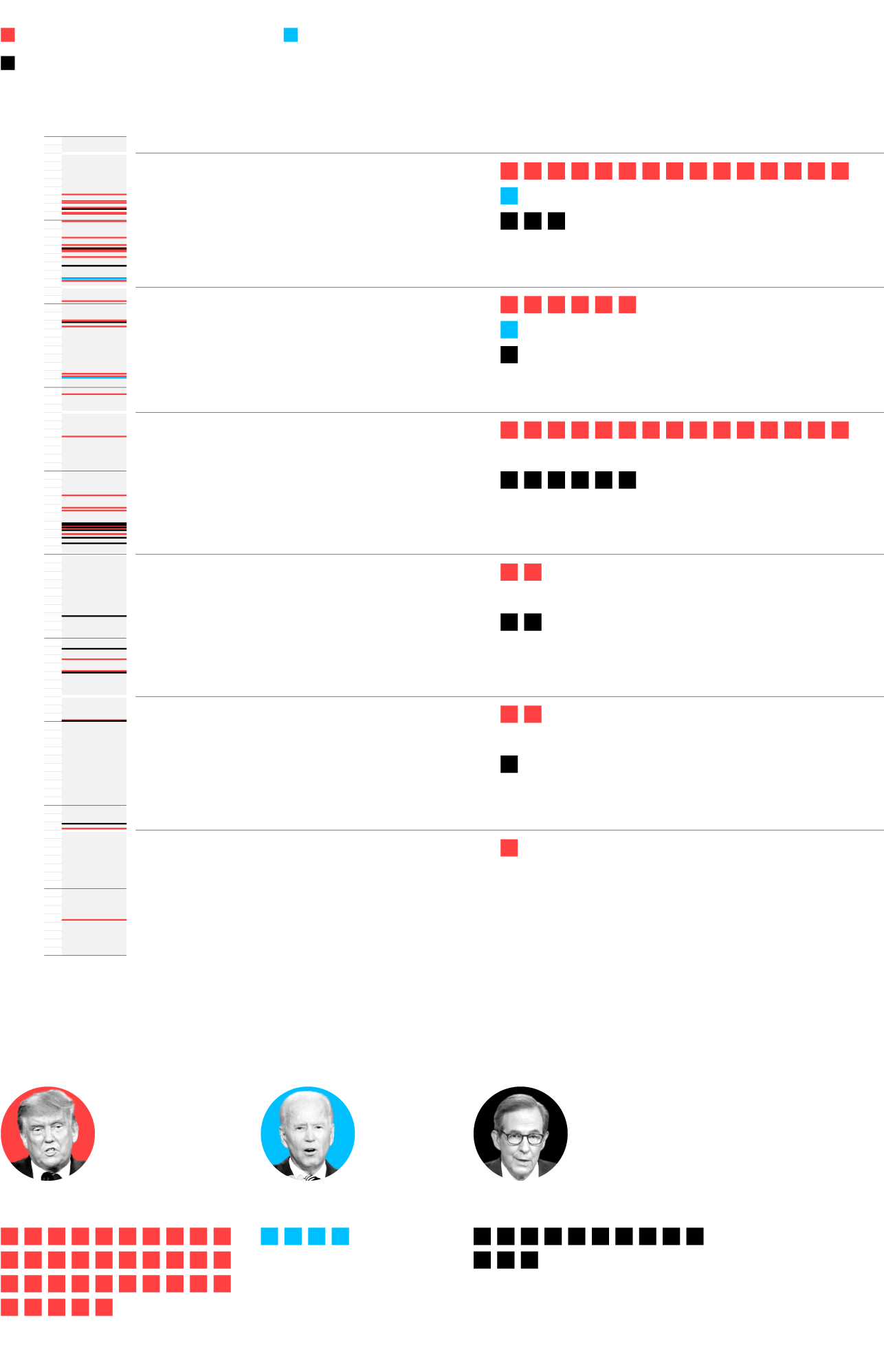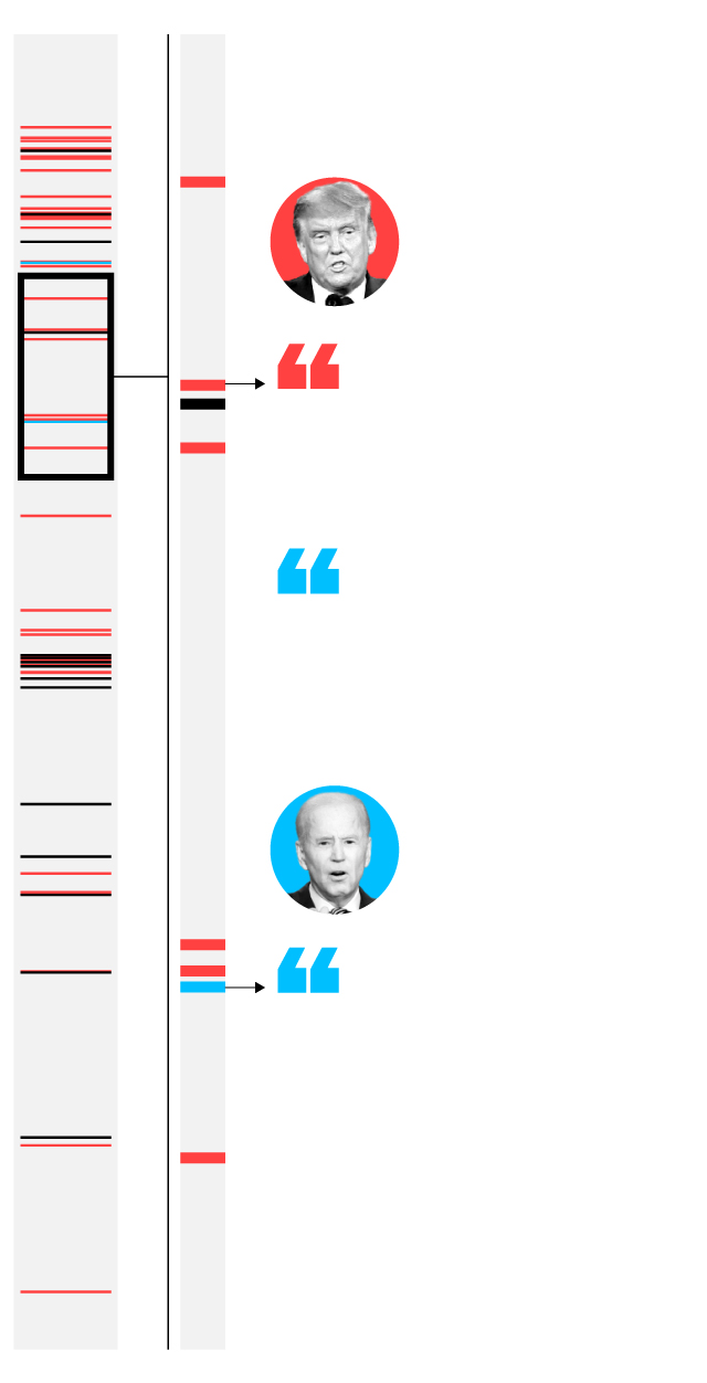 Tras las seis llamadas al orden del bloque anterior, Trump relajó un poco el tono y solo interrumpió al candidato demócrata en dos ocasiones. El moderador le llamó la atención dos veces, además de una vez a Biden y otra a ambos.
