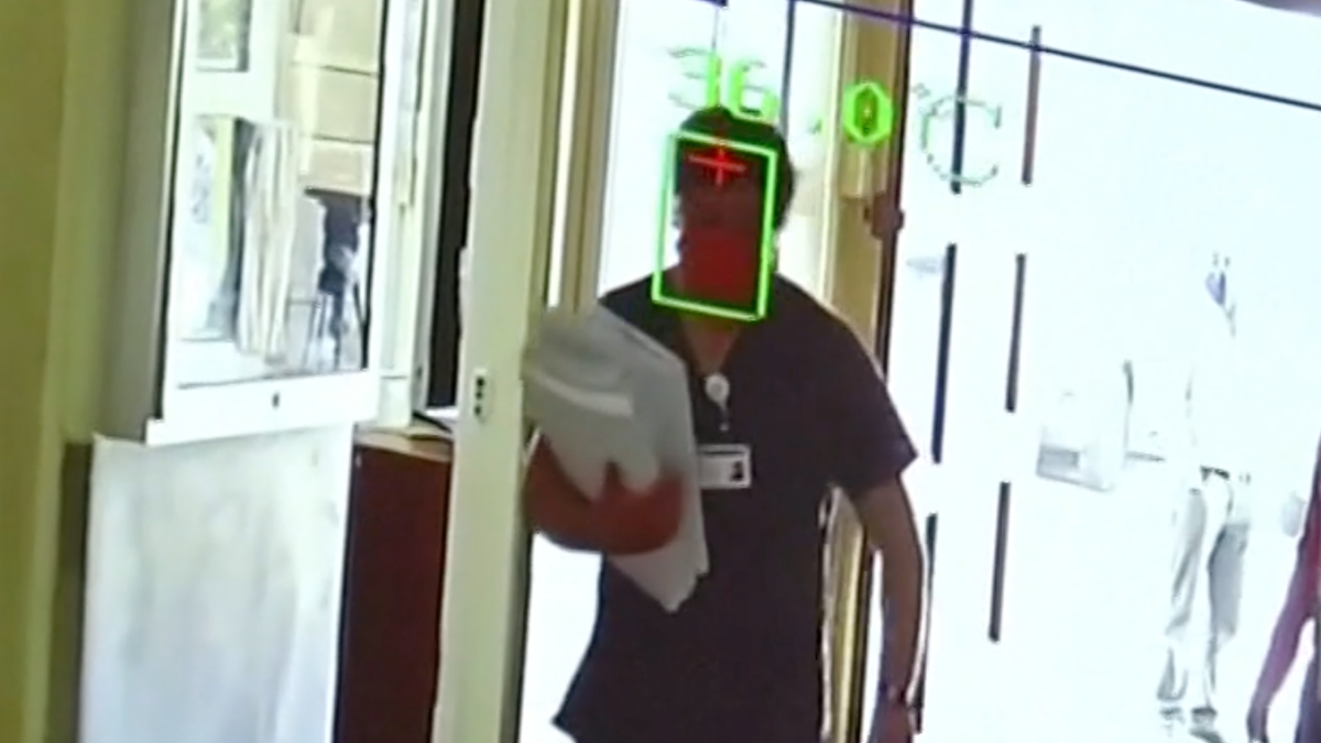 Por ejemplo, un sonido de alerta emitido por una cámara especial de vigilancia, que es capaz de tomar la temperatura corporal de todo el que pasa delante de ella.