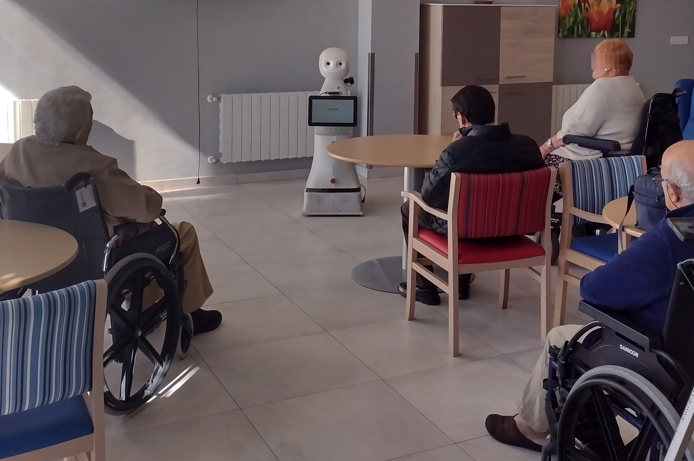 Felipe dice que es martes y que fuera hay 15 grados centígrados. Tiene memorizadas las actividades de la residencia y los cumpleaños de todos los mayores. Se mueve con soltura por el centro, esquivando a quienes se encuentra por el camino. Mejora día a día. Está empezando a hacer videollamadas y la idea es que, en un tiempo, pueda sacar fotos y mostrarlas a los demás, que aprenda a reconocerlos por sus caras, incluso por sus voces. Los residentes le han puesto el nombre de Felipe, “como el Rey”. Felipe es un robot.