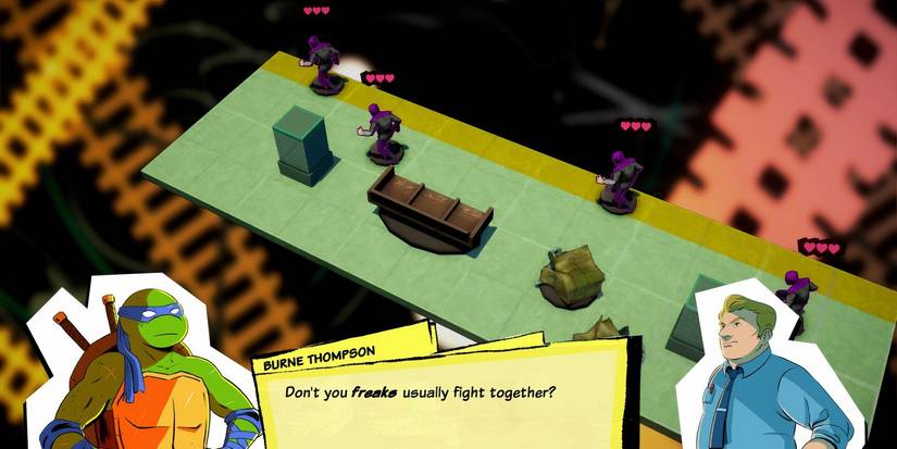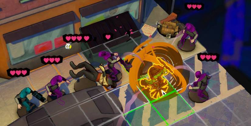 Como resultado, los personajes pueden sentirse estáticos contra el mundo más grande. Sin embargo, Esto también ayuda al juego a expandir su configuración y de repente se enciende un centavo.. Hay un divertido encanto de Lo-Fi para ver figuras enemigas, también representadas como Tabletop Minis, de repente volar o ser volado por un ataque lo suficientemente fuerte. Es encantador, una adaptación simple pero efectiva de las tortugas.