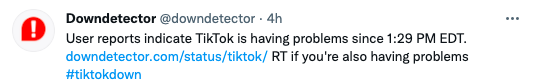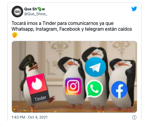 De acuerdo con Downdetector las caídas de Telegram y TikTok se produjeron minutos después de que Facebook, Instagram y WhatsApp se cayeran.
