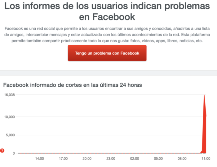 En Facebook, Instagram y WhatsApp los usuarios reportaron que no pudieron conectarse desde minutos antes de las 11 de la mañana de este lunes y el fallo se ha prolongado por más de dos horas, mientras la empresa sólo comentó que trabajaba en solucionarlo.