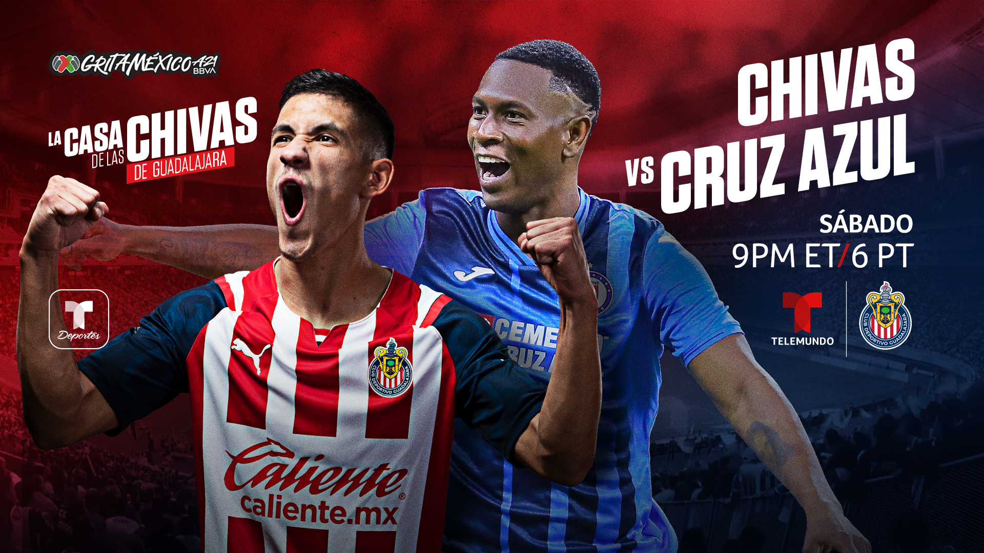 La acción futbolística de Telemundo Deportes estará destacada por el encuentro entre Chivas como anfitriones ante el Cruz Azul del torneo de apertura de la Liga MX, este sábado en vivo por Telemundo y Universo a partir de las 9:00 p.m. (hora del este).