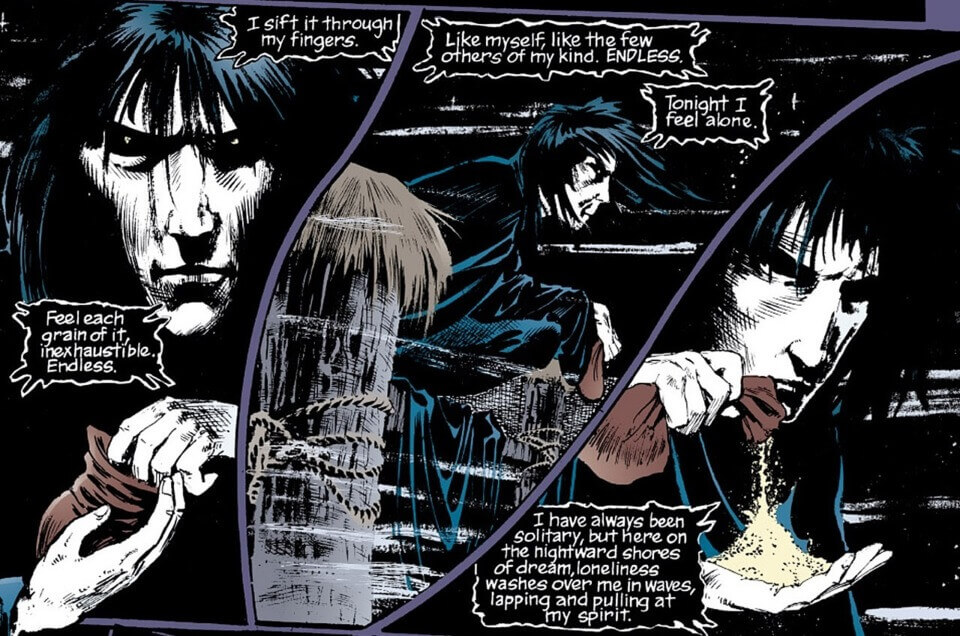 La historia de Sandman gira en torno al personaje Dream, uno de los Seven Endless. Dream, junto con los otros ‘Endless’ tienen miles de millones de años y cada uno representa una encarnación de una fuerza natural. Dream, también conocido como Morfeo junto con un montón de otros nombres y títulos adquiridos durante miles de millones de años, es la personificación antropomórfica de los sueños. Morpheus reside en su reino “The Dreaming”, donde tiene un control total y absoluto, pero lucha por adaptarse al cambio (un tema común que se repite a lo largo de la serie).