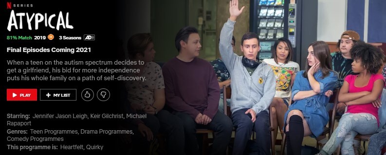 Fecha de lanzamiento que se muestra en la página de Netflix para Atypical